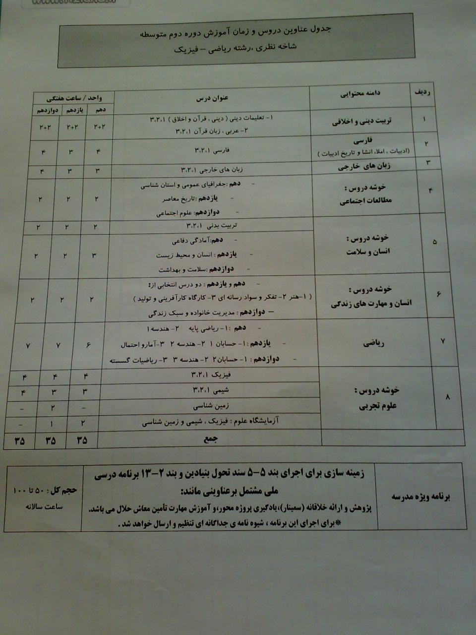 دروس دوره متوسطه دوم (رشته ریاضی -فیزیک)