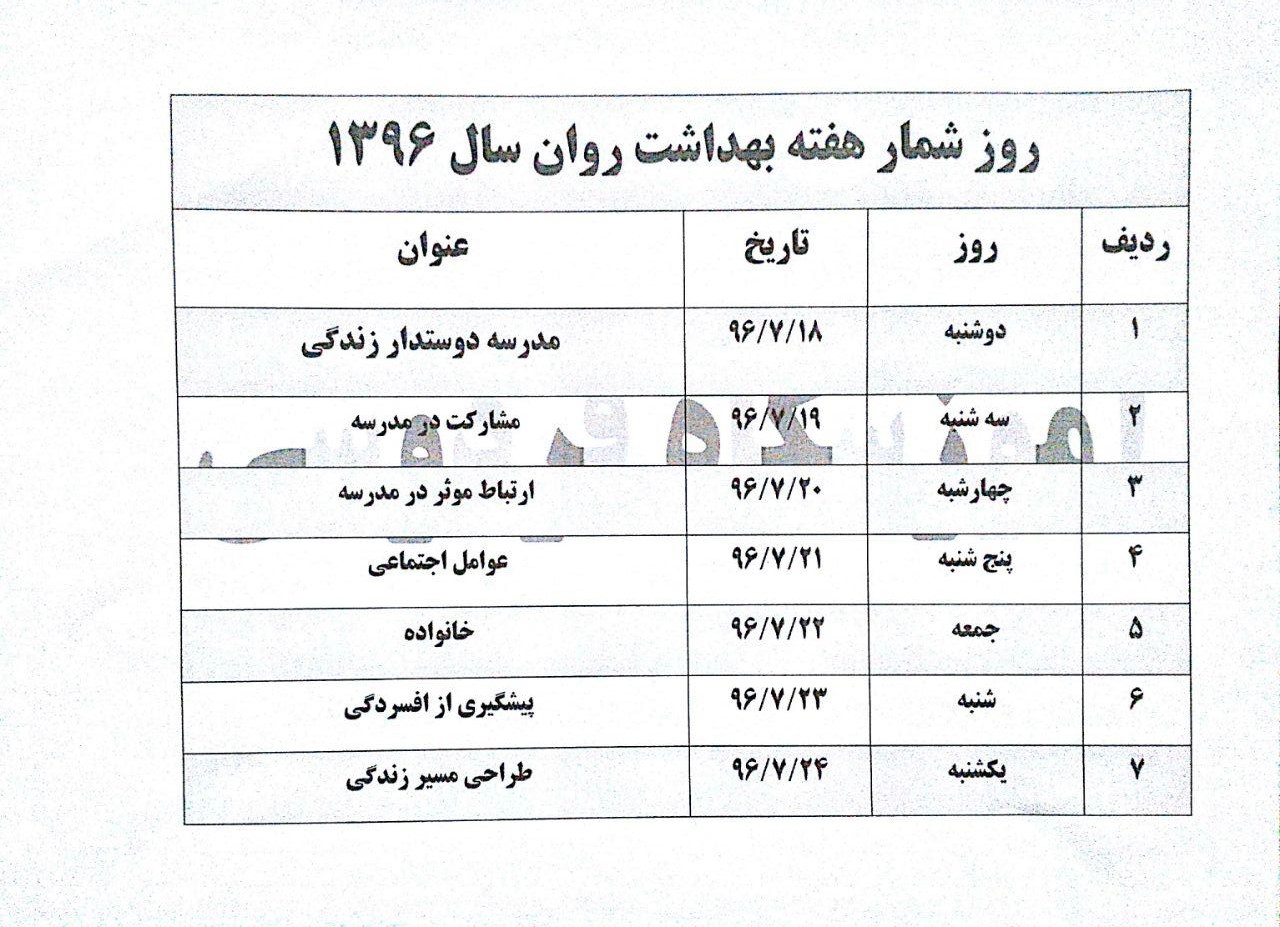 تقویم اجرایی هفته بهداشت روان- سال تحصیلی 97-96