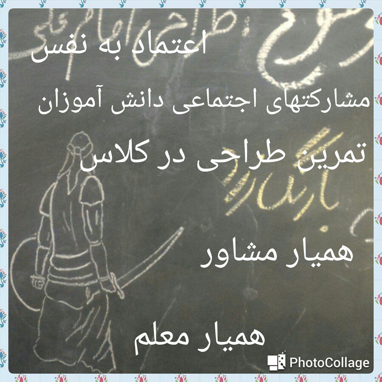 ارتقای اعتماد به نفس- تمرین طراحی در کلاس- مسوولیت پذیری اجتماعی - استعدادیابی تحصیلی-همیارمعلم- همی